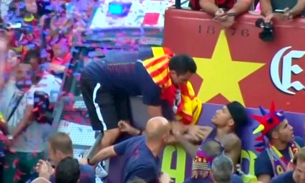 El centrocampista no quería perder su sitio en el autobús de la celebración y acabó propinando un manotazo al brasileño, que le estaba empujando.