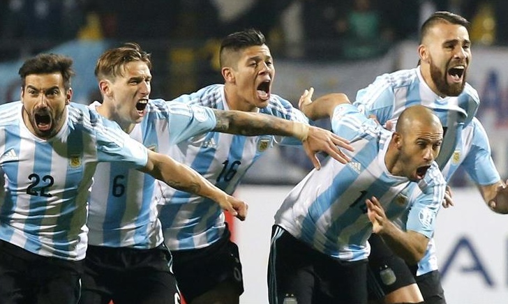 Penaltis: 0-1: James Rodríguez (gol). 1-1: Leo Messi (gol). 1-2: Radamel Falcao (gol). 2-2; Ezequiel Garay (gol). 2-3: Juan Cuadrado (gol). 3-3: Éver Banega (gol). 3-3: Luis Muriel (fuera). 4-3: Ezequiel Lavezzi (gol). 4-4: Edwin Cardona (gol), 4-4, Lucas Biglia (fuera). 4-4: Camilo Zúñiga (para Romero), 4-4: Marcos Rojo (fuera), 4-4: Jeison Murillo (fuera). 5-4: Carlos Tevez (gol)