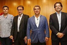 , Marc Cornet (i), Agustí Benedito (2i), Joan Laporta (2d) y Toni Freixa. | EFE