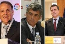 Javier Tebas, Ángel Villar y Miguel Cardenal. | LD/Archivo
