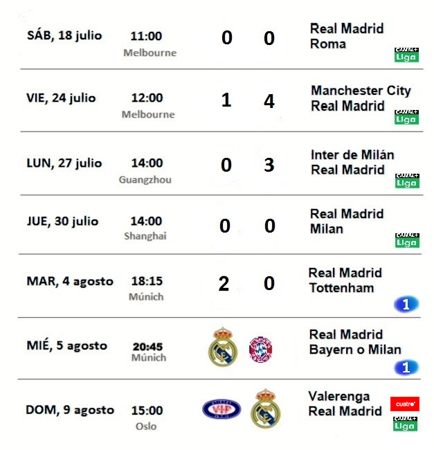 Una gira agotadora pero también con mucho morbo porque casi todos los rivales son de entidad: Roma, Manchester City, Inter de Milán, Milan, Tottenham Hotspur, Bayern de Múnich o Milan y Valerenga.