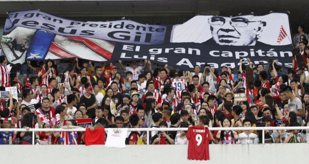 En el último entrenamiento previo al choque del Atlético en Shanghai se pudo ver mucha gente en las gradas y entre los centenares de carteles y pancartas que había con mensajes para Fernando Torres, Simeone o Griezmann destacó una que rezaba: "El gran presidente, Jesús Gil. El gran capitán, Luis Aragonés". En el caso del también fallecido ex entrenador rojiblanco no sorprende tanto halago, incluso en tierras asiáticas, pero sí sorprende la adoración a Jesús Gil.