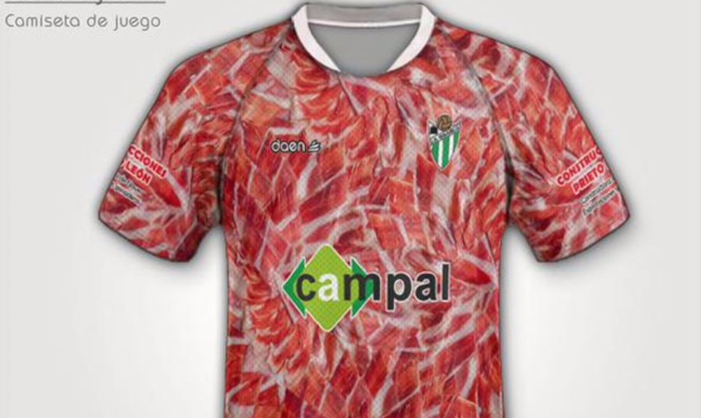 No se sabe muy bien por qué, publicidad, causas sociales o simplemente ganas de llamar la atención, pero todos los años algún equipo del fútbol español sorprende con el diseño de su camiseta. Este año, al Rayo Vallecano le ha salido competencia, y es que no ha sido el único que ha querido que el público se fije en ellos más allá de su juego. Es el caso de tres conjuntos: el primero de ellos es el Guijuelo, actualmente en Segunda División B. El equipo salmantino ha elegido para su segunda equipación un diseño muy particular y ligado a la gastronomía de la localidad: el jamón.