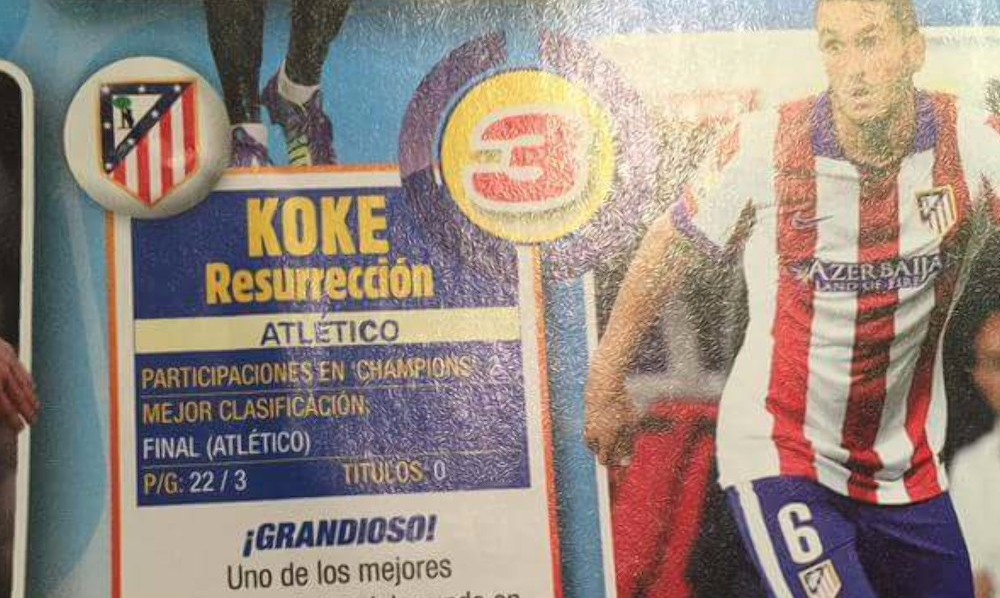 "Uno de los mejores centrocampistas del mundo en la actualidad. Si él funciona, el Atlético funciona. Le sobró un minuto para ser campeón. Le falta un equipo a su medido para serlo", reza la descripción del cromo de Koke.