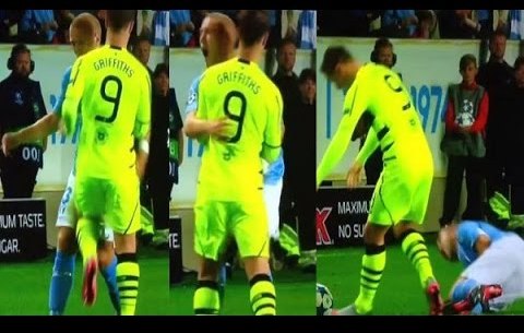 El jugador escocés del Celtic Leigh Griffiths agredió a un jugador del Malmo con un rodillazo en sus partes nobles.
