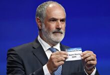 Andoni Zubizarreta muestra la papeleta del Bayern de Múnich durante el sorteo. | EFE