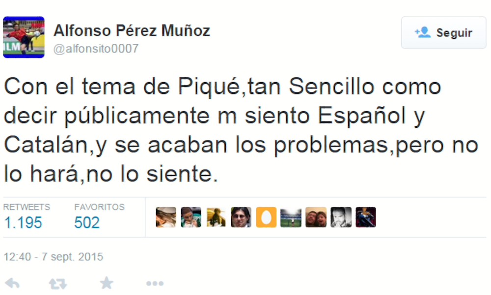 El gran protagonista del día de ayer, Alfonso Pérez Muñoz, dio la clave sobre el asunto de los pitos a Piqué en su cuenta de Twitter: