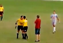 El colegiado es policía de profesión y tuvo que ser sujetado por sus asistentes para evitar una tragedia mayor.