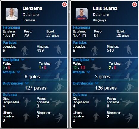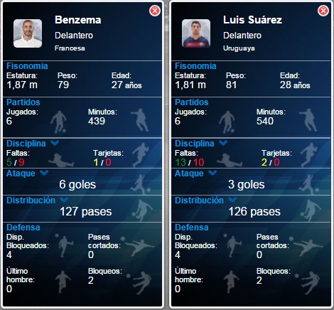 Y a esto, hay que sumarle el que Benzema es un centrocampista más. Podemos compararle con el delantero centro titular del Barcelona: Luis Suárez. El jugador del Real Madrid, en 439 minutos, ha dado 127 pases para anotar 6 goles. Luis Suárez, ha marcado 3 goles, ha dado 126 pases, pero en 540 minutos. Son 100 minutos más, un partido y medio de diferencia.