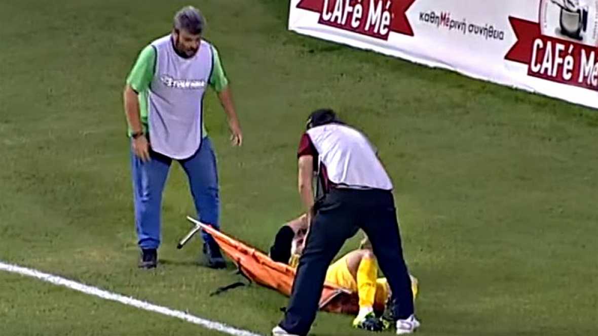 En el duelo entre AE Larissa y Ergotelis apareció tendido en el campo el jugador Alexander Koutris. Al ver que no se recuperaba, el árbitro solicitó el ingreso de los camilleros.