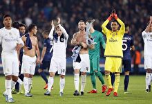 Los jugadores del Real Madrid saludan a su afición a la conclusión del partido en París. | EFE