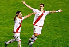 Javi Guerra (i) celebra uno de sus dos goles al Espanyol. | EFE
