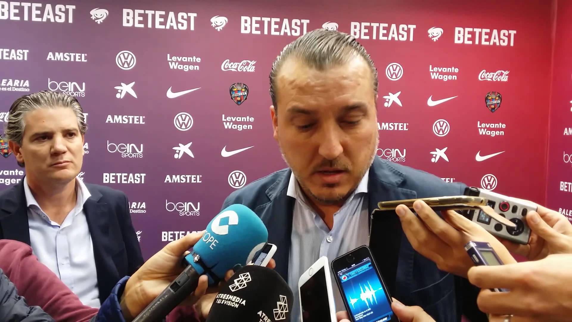 El presidente del Levante, Quico Catalán, comparece ante los medios para comunicar la destitución de Lucas Alcaraz como primer entrenador del conjunto valenciano.