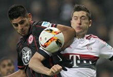 Lewandowski (d) lucha por un balón con Zambrano. | EFE