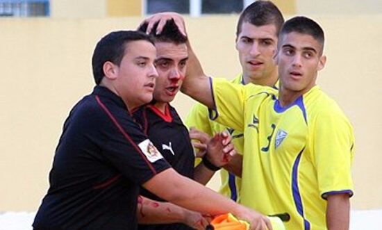 El árbitro tuvo que ser atendido en un centro médico y acudió a realizar la correspondiente denuncia. En el acta, se describe del siguiente modo lo sucedido: