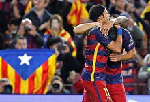 Neymar celebra con Luis Suárez su segundo gol al BATE Borisov. | EFE