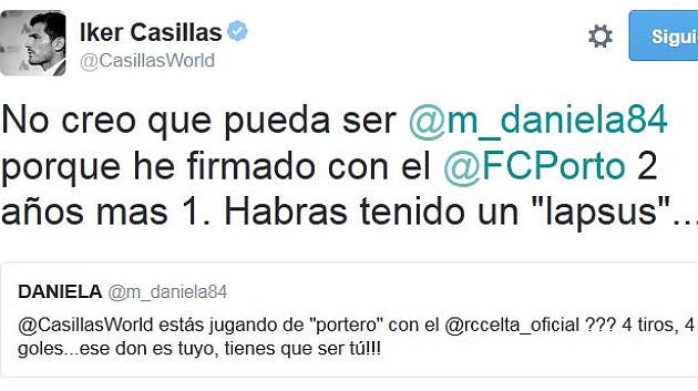 Un usuario de Twitter hizo alusión a Iker Casillas comparando la actuación de Sergio con las que el actual guardameta del Oporto tuvo la temporada pasada cuando defendía la portería del Real Madrid. La respuesta de Iker no se hizo esperar.