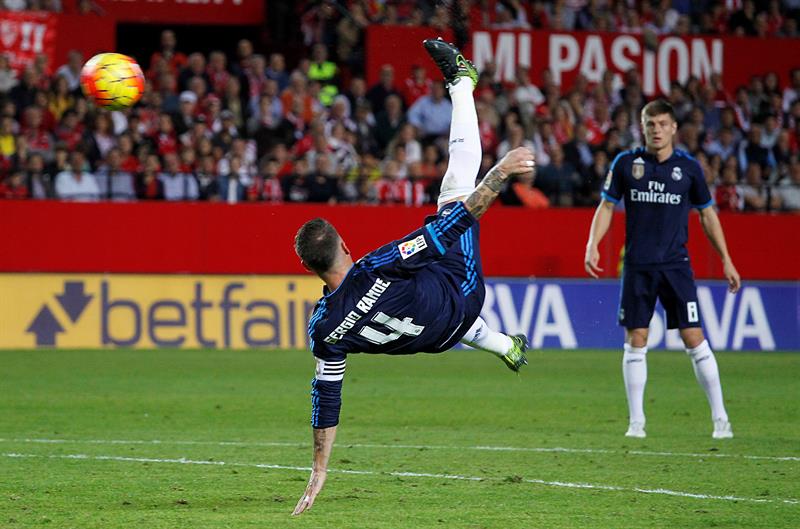Puestos a competir, los jugadores de Real Madrid y Barcelona lo hacen incluso a la hora de marcar grandes tantos. Neymar deslumbró al Camp Nou y Sergio Ramos hizo lo propio en el Sánchez Pizjuán con una gran chilena que puso el 0-1 en el marcador. Recayó de su lesión en el hombro, pero dejó otro gol para la historia.