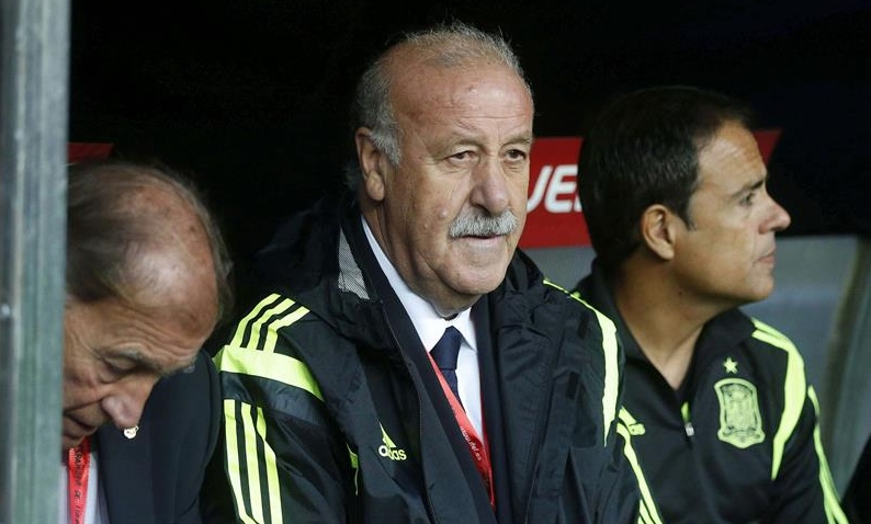 La defensa la formarían Mario Gaspar, Piqué, Bartra y Jordi Alba, con un centro del campo con Busquets, Thiago Alcántara, Cesc Fábregas y Andrés Iniesta y la apuesta de dos 'nueves' con Alcácer y Diego Costa. Fue la prueba de Del Bosque.