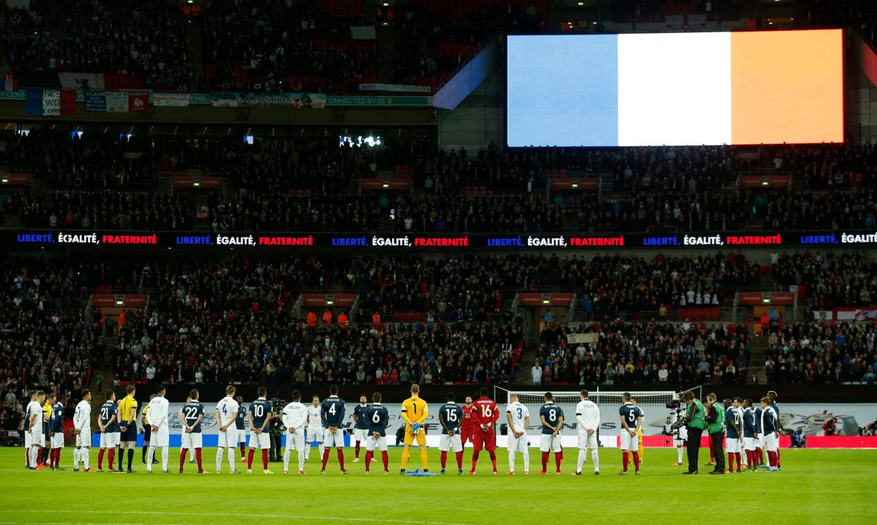 Emotivo minuto de silencio en Wembley con todos los jugadores de ambas selecciones, Inglaterra y Francia, intercalados.