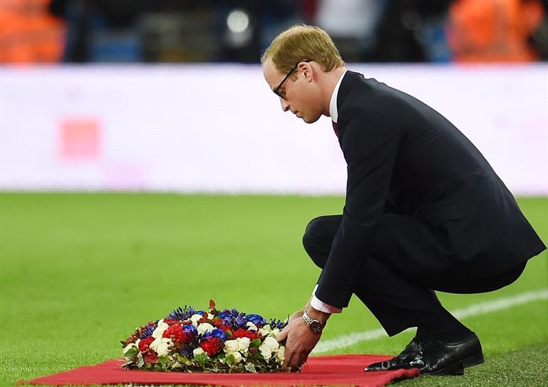 Antes de que comenzara el partido y sonaran los himnos, el Príncipe Guillermo hizo una ofrenda floral.