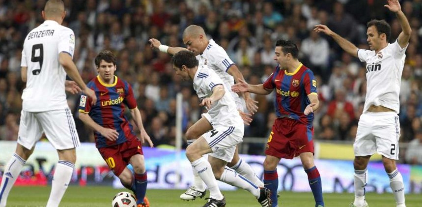 El primer clásico como técnico merengue se resolvió con una manita en el Camp Nou (5-0), pero la cosa empezaría a cambiar a partir del mes de abril, con cuatro duelos entre madridistas y azulgranas en 18 días, entre Liga, la final de Copa del Rey y las semifinales de Champions. El primero de esos cuatro enfrentamientos (día 16), en partido correspondiente al campeonato liguero, acabó con tablas en el Bernabéu (1-1), con los blancos jugando casi toda la segunda parte con uno menos por la expulsión de Raúl Albiol. Un duelo en el que Mou decidió apostar por un trivote, con Pepe acompañando en el medio centro a Xabi Alonso y Khedira, además de dejar a Özil en el banquillo, con la intención de contrarrestar el potente centro del campo azulgrana que formaban Busquets, Xavi e Iniesta. Una elección, la de Pepe en esa demarcación, que acabaría resultando todo un éxito.