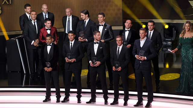 Defensas (20): David Alaba (Austria/Bayern de Múnich), Jordi Alba (España/Barcelona), Jérôme Boateng (Alemania/Bayern de Múnich), Daniel Carvajal (España/Real Madrid), Giorgio Chiellini (Italia/Juventus), Dani Alves (Brasil/Barcelona), David Luiz (Brasil/Paris Saint-Germain), Diego Godín (Uruguay/Atlético de Madrid), Mats Hummels (Alemania/Borussia Dortmund), Branislav Ivanovic (Serbia/Chelsea), Vincent Kompany (Bélgica/Manchester City), Philipp Lahm (Alemania/Bayern de Múnich), Marcelo (Brasil/Real Madrid), Javier Mascherano (Argentina/Barcelona), Pepe (Portugal/Real Madrid), Gerard Piqué (España/Barcelona), Sergio Ramos (España/Real Madrid), John Terry (Inglaterra/Chelsea), Thiago Silva (Brasil/Paris Saint-Germain) y Raphaël Varane (Francia/Real Madrid).