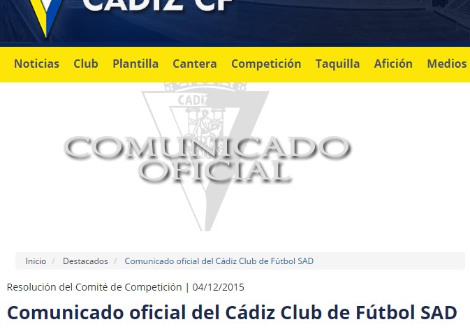 Comunicado del Cádiz sobre la sanción al Real Madrid: