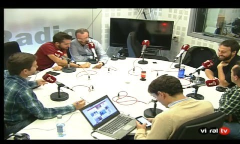Dieter y Juan Pablo comentan con G. Domínguez, G, Heredero, Azpitarte, D. Ortín y S. Valentín la crisis del Real Madrid.