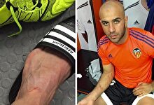 El central del Valencia colgó en Instagram las marcas en el brazo y el pie derechos.