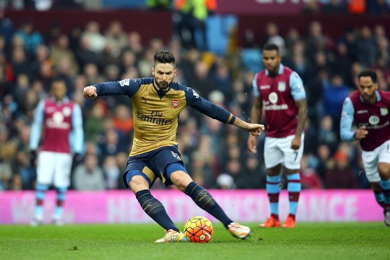 El francés Olivier Giroud y el galés Aaron Ramsey propiciaron la victoria del Arsenal en Birmingham contra el Aston Villa y situaron al conjunto londinense como líder de la Premier a expensas del Leicester, que el lunes recibe al Chelsea.