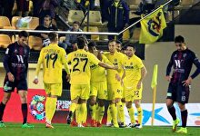 Los jugadores del Villarreal celebran el primer gol del equipo, obra de Manu Trigueros. | EFE