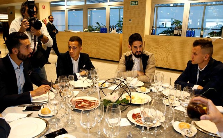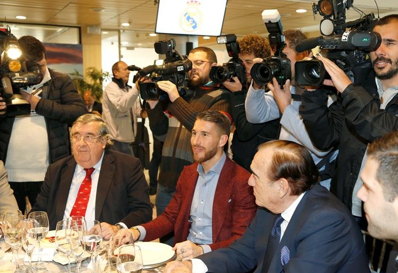Florentino Pérez encabezó la comida navideña de las secciones de fútbol y baloncesto del Real Madrid que ha tenido lugar este viernes en el antepalco del Santiago Bernabéu.