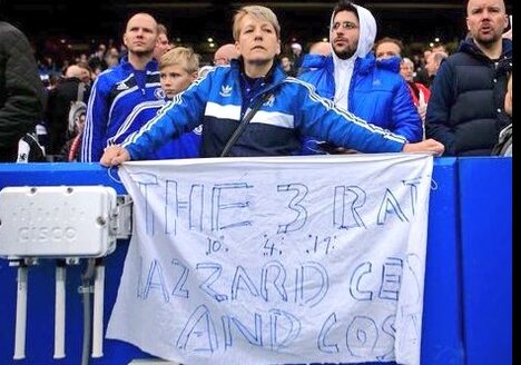 Mourinho, que renunció al mayor finiquito de la historia del fútbol, 55 millones de euros, sigue teniendo el apoyo principal del público de Stamford Bridge. Cánticos constantes, pancartas de agradecimiento al técnico luso y una señalando a los que, para la afición del Chelsea, son los principales culpables:"Las tres ratas: Hazard, Cesc y Costa". A pesar de que ya no se sienta en su banquillo. el espíritu de Mourinho sigue muy presente en Stamford Bridge.