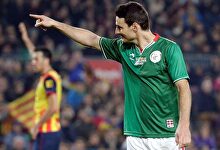 El delantero del Athletic celebra un gol La selección de Euskadi toma el feudo independentista catalán Media entrada en el recinto azulgrana para ver el encuentro presidido por Artur Mas e Iñigo Urkullu
