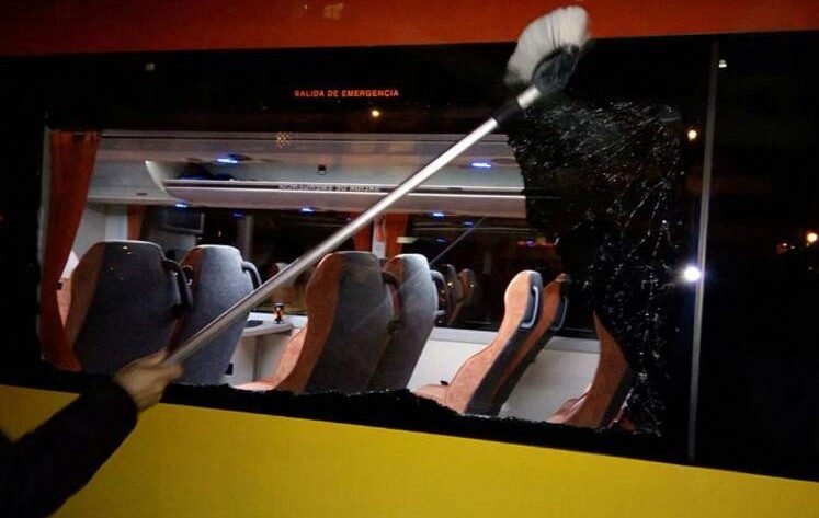 El autobús en el que viajaban los seguidores madridistas de la Grada FANS RMCF fue apedreado a las 22.00 horas del sábado mientras estaba aparcado en las inmediaciones del campo de Mestalla, donde Valencia y Real Madrid sellaron el empate (2-2), resultado de lo cual varias lunas de éste quedaron destruidas.