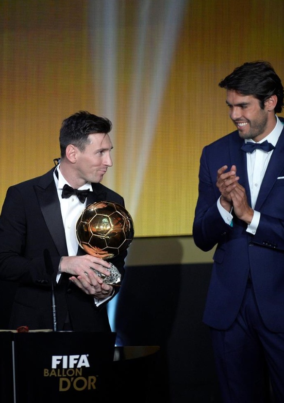 El futbolista brasileño, ganador del Balón de Oro en 2007, fue el encargado de entregar el galardón a Leo Messi.