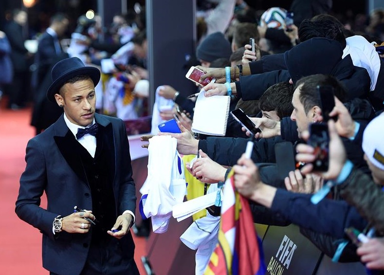 Neymar Junior reconoció en la rueda de prensa previa a la gala que "estar aquí ya es una victoria". El brasileño quedó tercero en las votaciones por detrás de Leo Messi y Cristiano Ronaldo, a quienes se refería como "los mejores jugadores que he visto nunca".