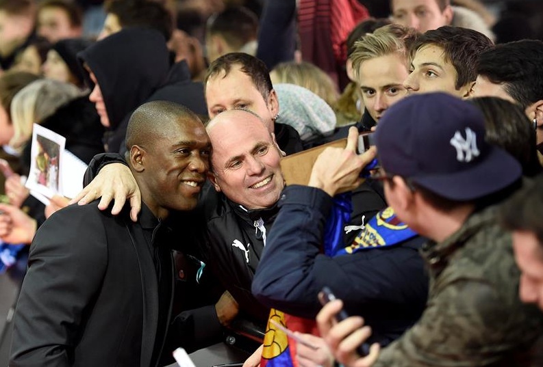 Clarence Seedorf, exfutbolista holandés del Milan y el Real Madrid, quiso fotografiarse con un grupo de aficionados en la alfombra roja.