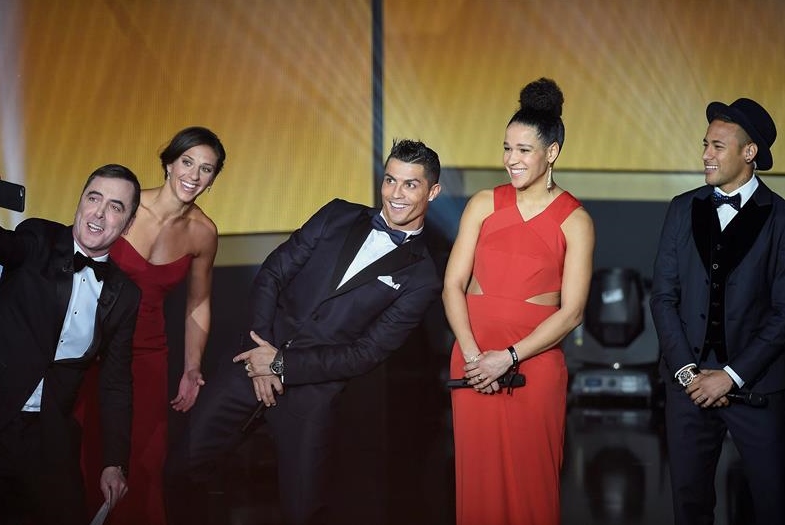 James Nesbitt, uno de los dos presentadores de la gala, quiso fotografiarse junto a Cristiano Ronaldo y Neymar, así como con las jugadoras Carli Lloyd y Celia Sasic.