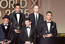 Dani Alves (2i) y Cristiano Ronaldo (d), en la gala de la FIFA junto a Neymar, Messi e Iniesta. | EFE