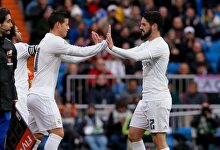 Isco saluda a James al ser sustituido en el partido ante el Sporting. | EFE