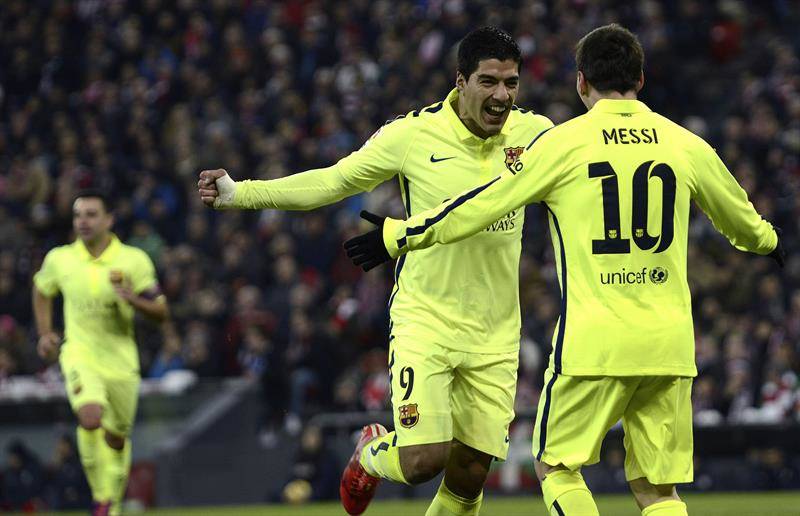 El FC Barcelona ha viajado hoy a Bilbao sin Leo Messi, con problemas físicos, ni Luis Suárez, por sanción, para afrontar el partido de ida de los cuartos de final de la Copa del Rey.