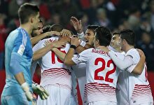 Los jugadores del Sevilla celebran el primer gol de la noche, obra de N'Zonzi. | EFE