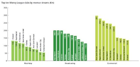 Las previsiones de Deloitte, en dos años, la Premier League tendrá a 20 de los 30 clubes con más ingresos. En este último año han subido sus beneficios de manera considerable el Arsenal, gracias al nuevo acuerdo con Puma, que le ha supuesto un 34% más de ingresos comerciales y el Manchester United, que ha compensando con nuevos patrocinios su ausencia en la Champions League. Es el único club que está entre los diez primeros y no disputa esta competición.