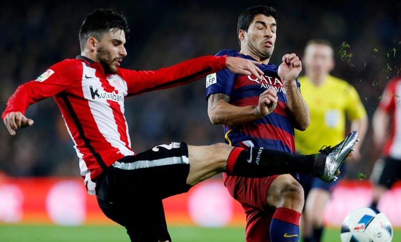 Luis Suárez consiguió irse de rositas en el partido de Copa del Rey que Barcelona y Athletic de Bilbao disputaron este miércoles por la noche en el Camp Nou (3-1).