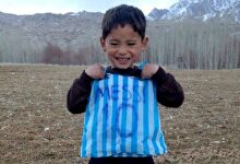 El pequeño Murtaza Ahmadi, con la improvisada camiseta de Messi. | Twitter