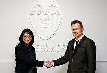 Denis Cheryshev saluda a la presidenta del Valencia, Lay Hoon. | valenciacf.com