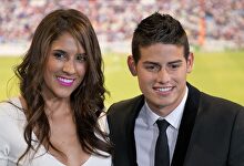 James, junto a su esposa Daniela Ospina en su presentación en el Bernabéu. | Cordon Press/Archivo