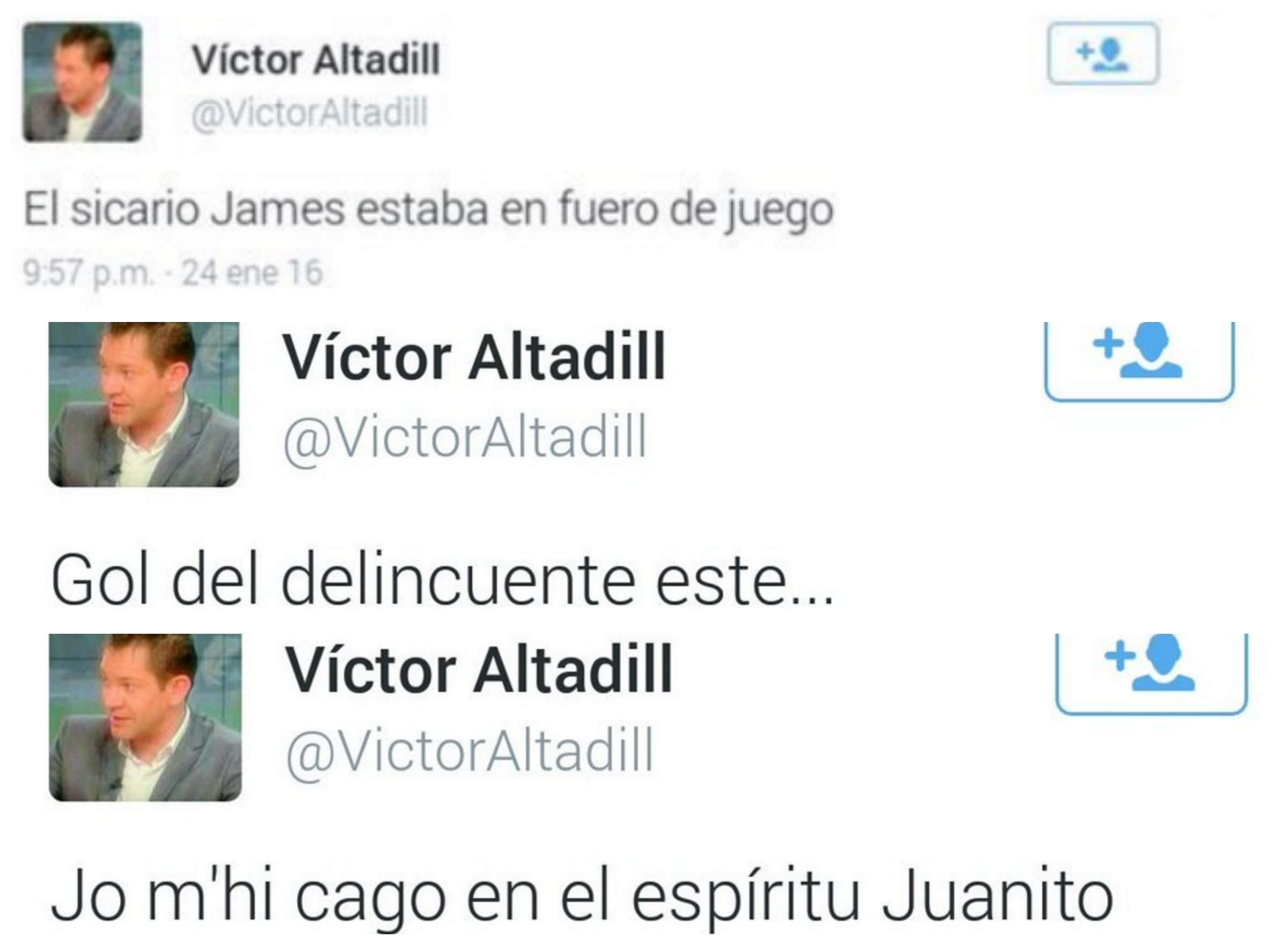 Altadill perdió el norte en su cuenta. Empezó llamando "delincuente" a Karim Benzema, continuó con el colombiano James, al que llamó "sicario". Y sentenció sobre Cristiano Ronaldo: "Ahora se va a Marruecos a celebrarlo y que le rompan el culo".